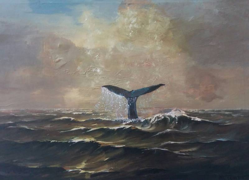 Spermwhale at sunset 50 x 70 cm acryl on canvas E 400